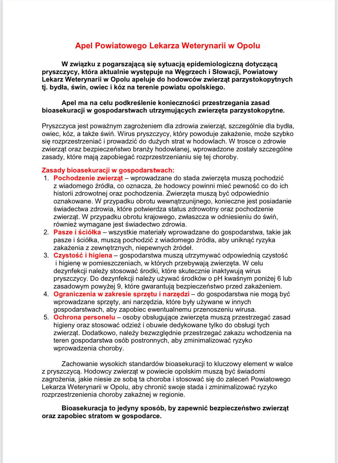 ⚠️ W związku z pogarszająca się sytuacją epidemiologiczną dotyczącą pryszczycy, która aktualnie występuje na Węgrzech i Słowacji, Powiatowy Lekarz Weterynarii apeluje do hodowców zwierząt parzystokopytnych o przestrzeganie zasad bioasekuracji.