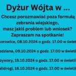 ℹ️ 15 października od godz. 17:00 w Domu Kultury w Przyworach będzie można spotkać się z Panem Wójtem. 👉 Nie zawsze jest czas, żeby podjechać do urzędu, nie każdy chce …